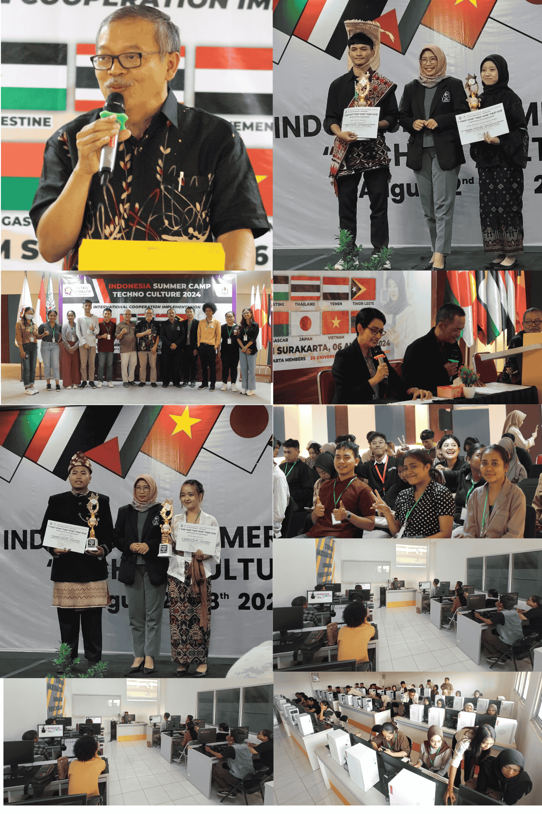 Kegiatan Summer Camp Techno Culture in Program 2024 telah sukses dilaksanakan. Kegiatan berjalan lancar sesuai rencana. Hasil yang diperolehpun memuaskan. Para peserta dari 9 (sembilan) negara yang berbeda saling membaur dalam mempelajari berbagai ilmu, aplikasi teknologi serta pengenalan budaya masing-masing. Hal ini dapat meningkatkan pengetahuan di antara mereka, memupuk rasa percaya diri dan mempertebal rasa solidaritas antar umat manusia. Bagi penyelenggara kesuksesan ini menjadi acuan dalam membuat acara yang lebih besar di kemudian hari. Semoga kedepannya kerjasama internasional dengan berbagai perguruan tinggi dan institusi luar negeri berjalan semakin intensif sehingga mendapatkan hasil yang win-win. Harapan dan doa baik semoga STMIK AMIKOM Surakarta menjadi semakin besar dan jaya. Amiiin…..