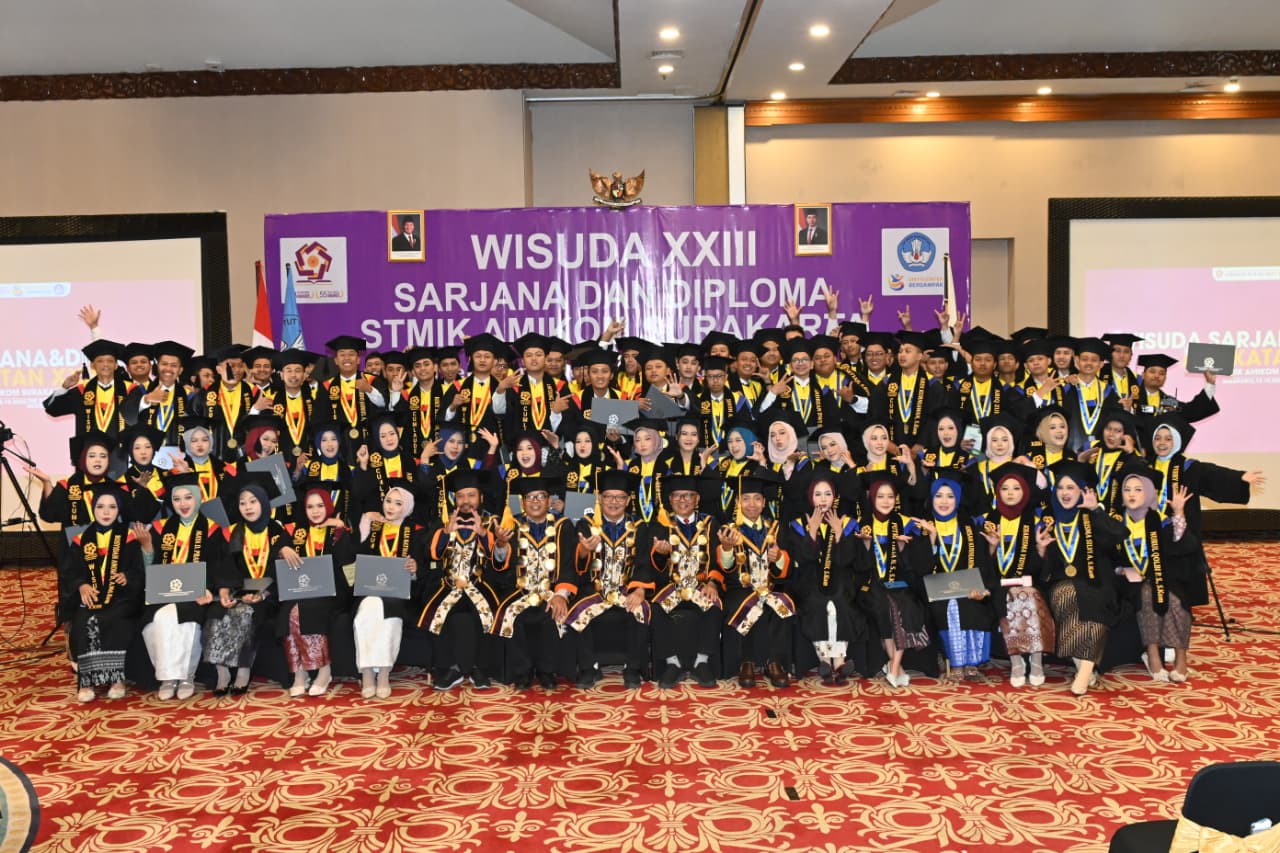 Suasana prosesi wisuda kali ini berlangsung dengan penuh kebahagiaan, haru, dan rasa syukur. Ini bukan hanya sekadar seremoni akademik, tapi juga moment of transformation, di mana para lulusan siap menjadi agen perubahan di dunia nyata. Selamat kepada seluruh wisudawan/wati Wisuda XXIII STMIK AMIKOM Surakarta. Terus berkarya, berinovasi, dan menjadi bagian dari generasi pembaharu yang membawa perubahan untuk Indonesia dan dunia.